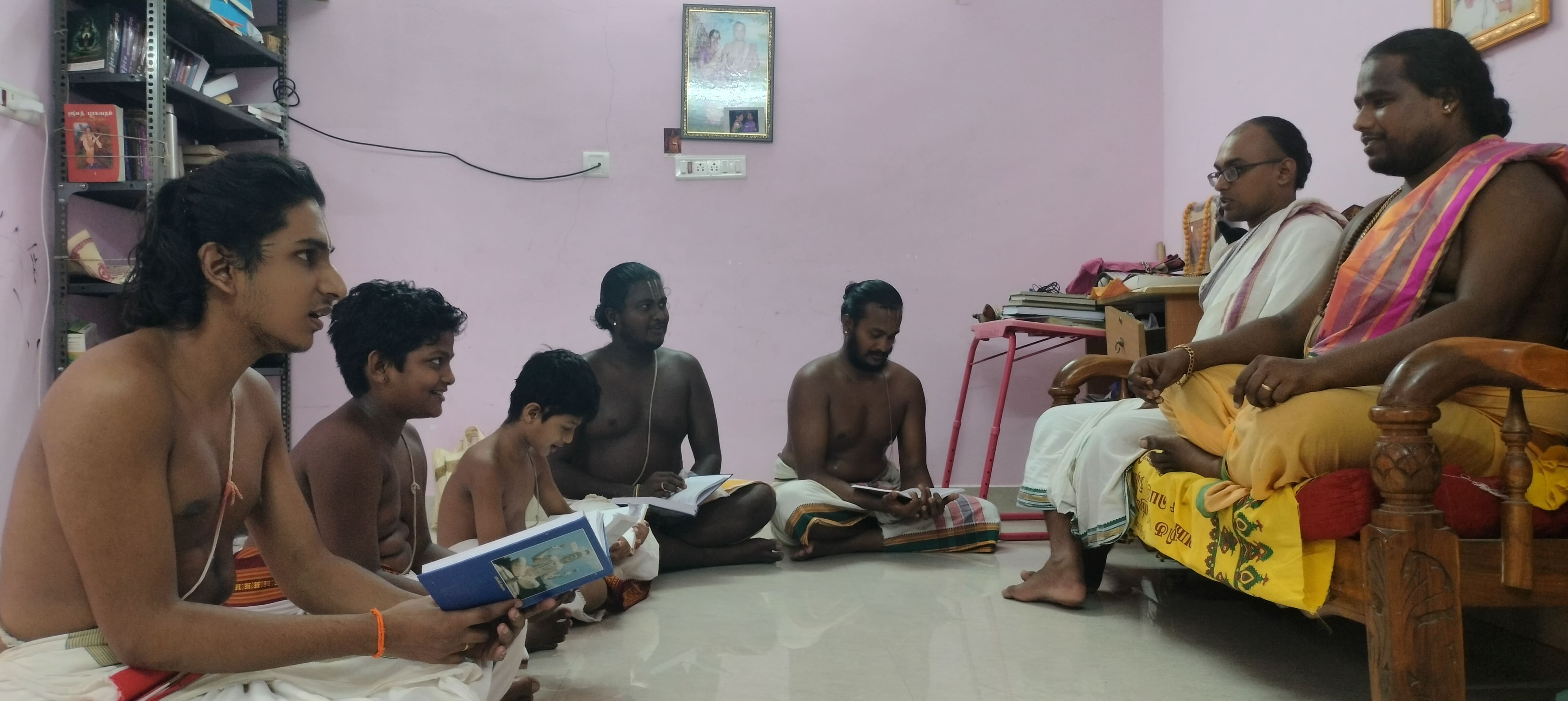 Our Guru Brahmasri SB Kalyanaraman Bhattachar ordered to start a Patasala and teach vedas and puranams to our younger generation. We follow his orders and doing this as kainkaryam.